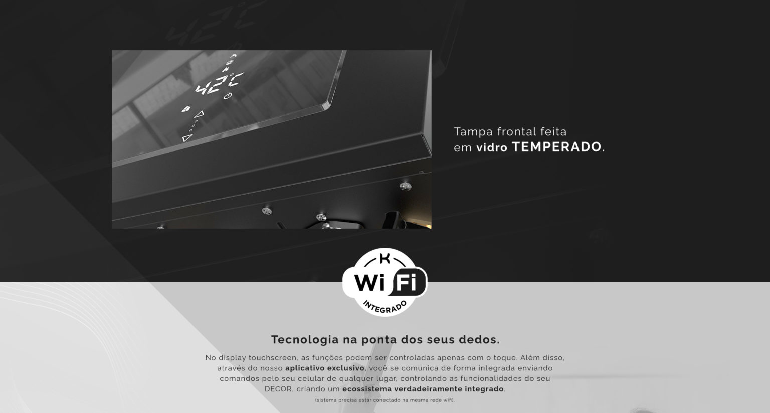 E com um belo design em vidro temperado, ângulos acentuados e materiais de alta qualidade te apresentamos a linha DECOR, uma combinação perfeita que une beleza, qualidade e eficiência.